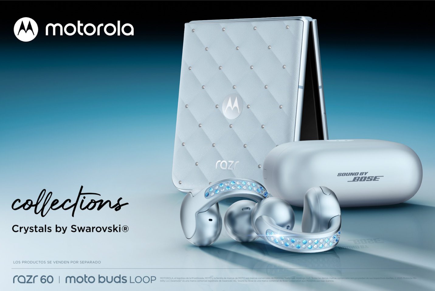 Esta colección reúne el motorola razr 60 y los moto buds loop, incrustados con cristales de Swarovski® ambos en color Ice Melt, en una radiante muestra de cómo la moda y la funcionalidad pueden brillar en perfecta armonía. La radiante propuesta, que muestra cómo la moda y la funcionalidad brillan en perfecta armonía, puede adquirirse en combo (bundle) a través de Claro Dominicana.